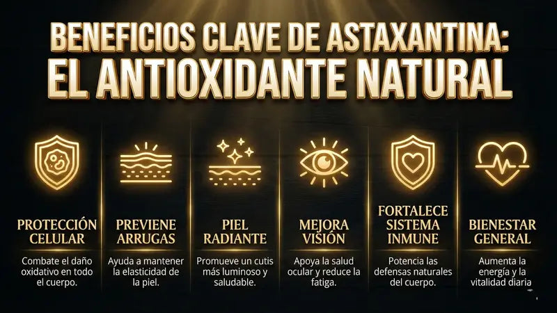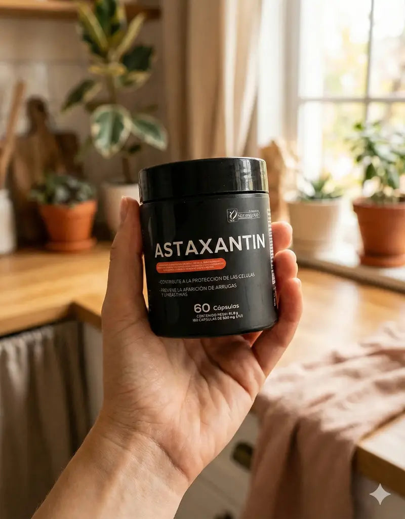La Astaxantina es un antioxidante natural que ayuda a proteger las células del cuerpo frente al estrés diario causado por factores como el sol, las pantallas y la contaminación, apoyando el bienestar general.