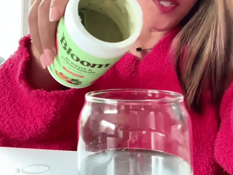 Bloom Super Greens es un polvo superalimentado hecho con probióticos, enzimas digestivas, spirulina, chlorella, matcha y una mezcla real de frutas y verduras.
