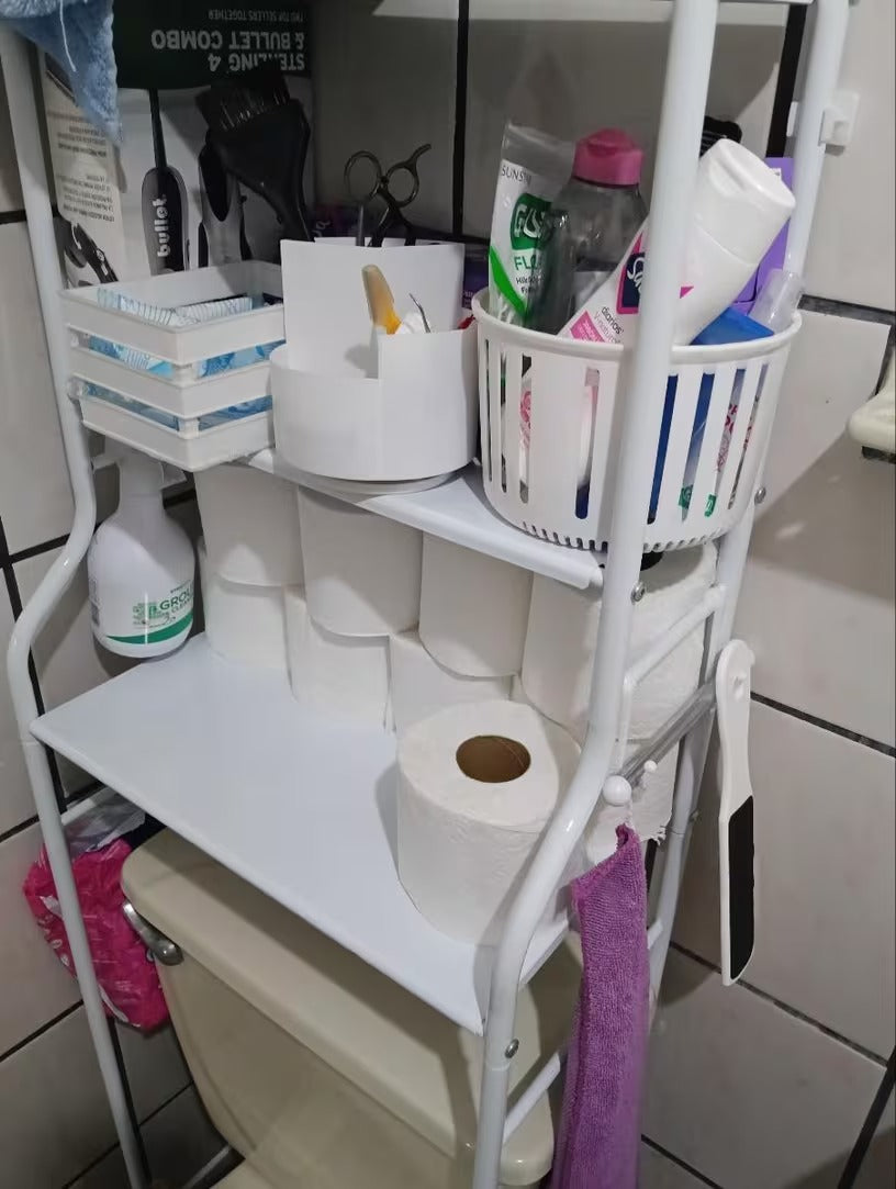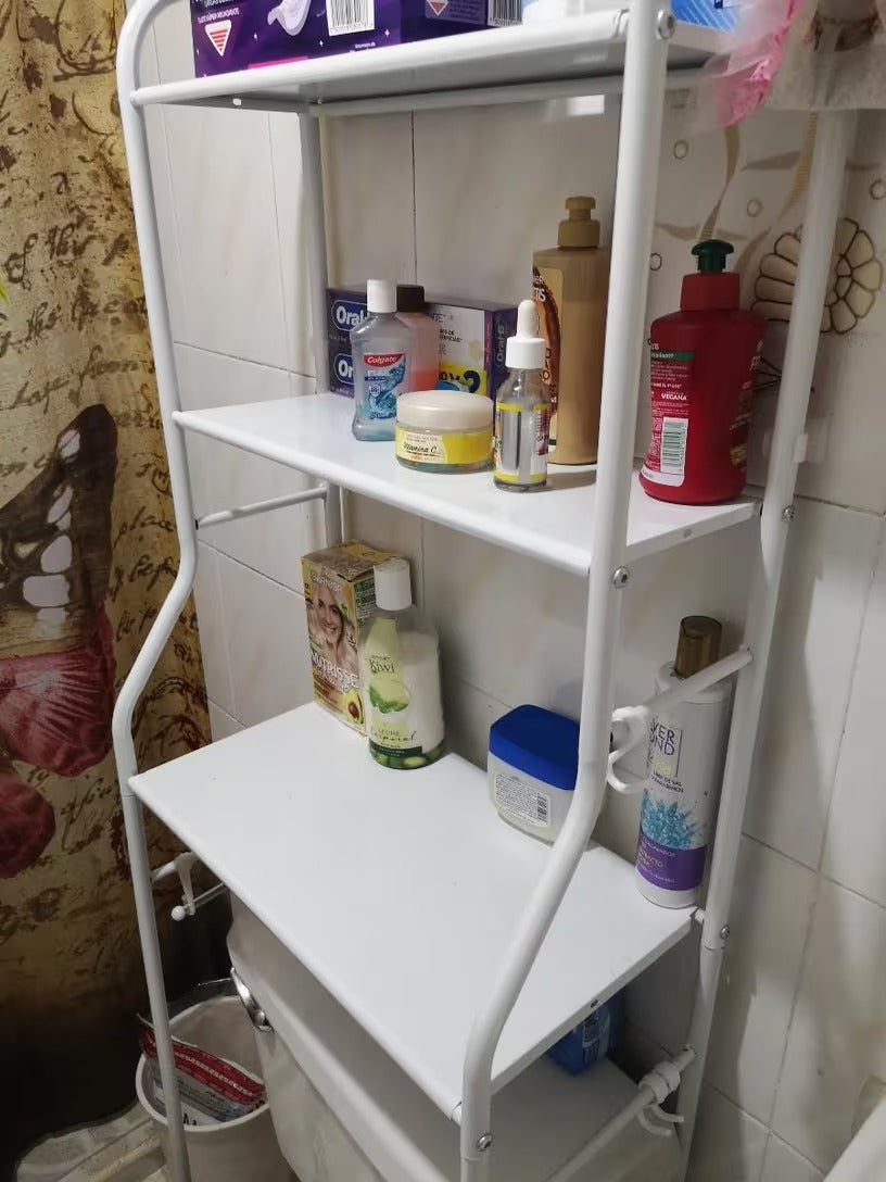 Cada nivel está diseñado para soportar aproximadamente 8–12 kg, gracias a su estructura de acero grueso y estable. Perfecto para toallas, detergentes, productos de baño y más.
