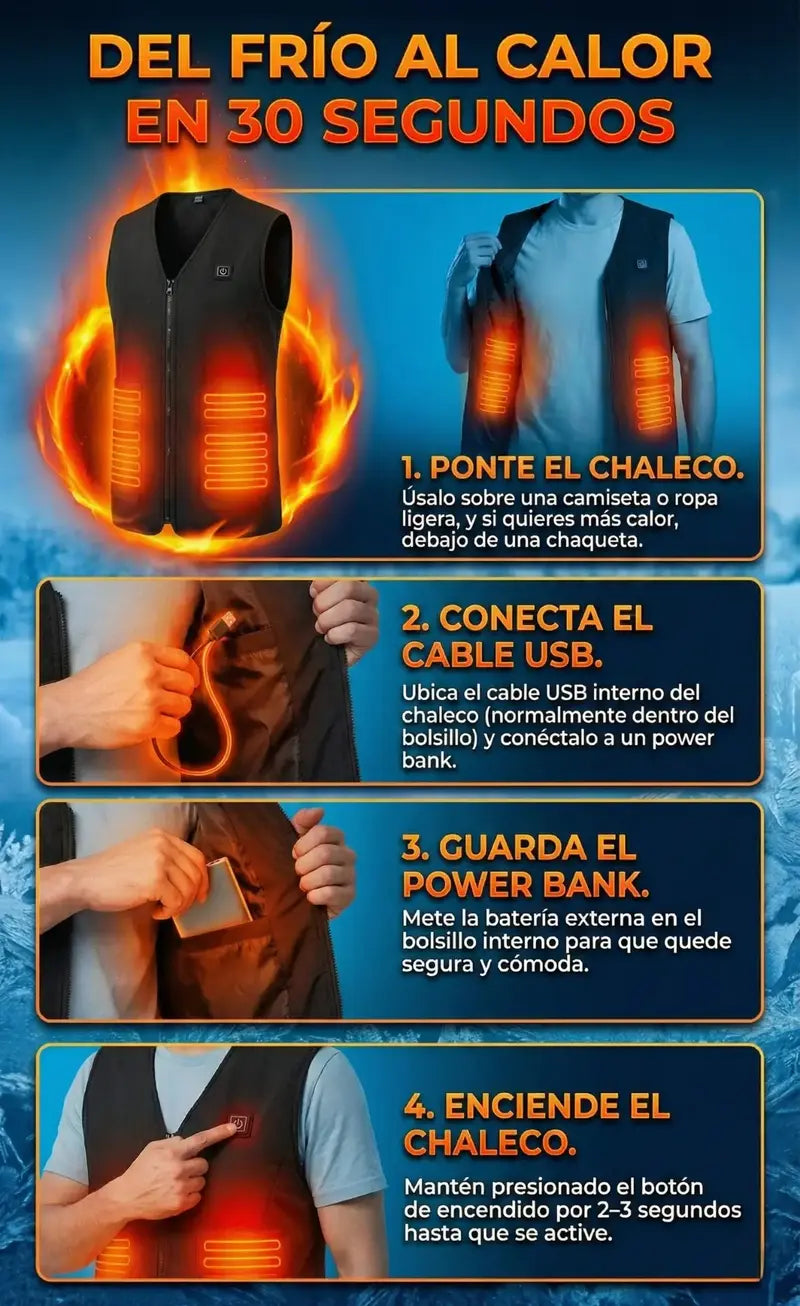 ✔ 1 Chaleco Térmico con calefacción interna de fibra de carbono