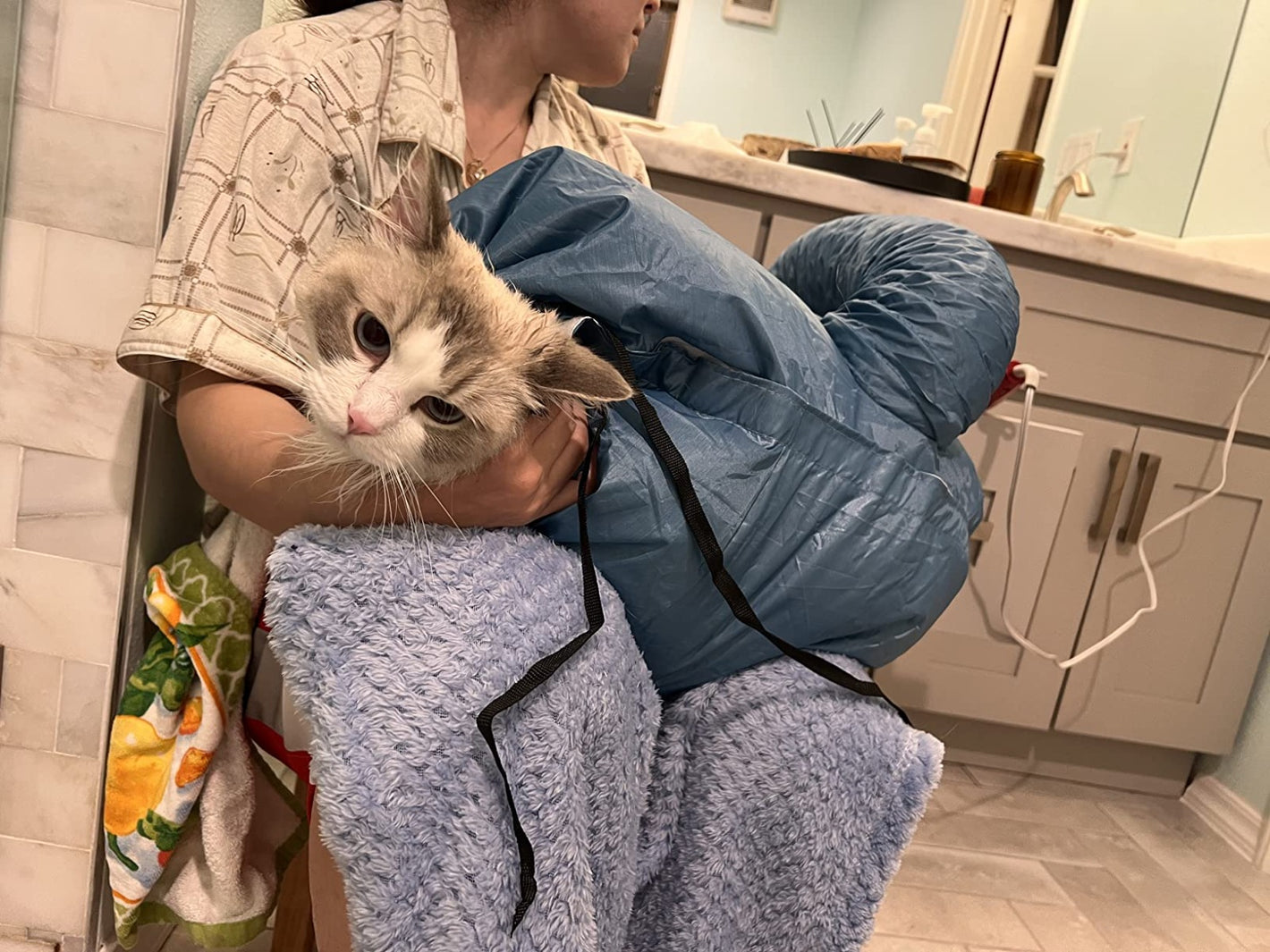 Lo que más me gusta es que puedo hacer otras cosas mientras se seca. No tengo que perseguirlo con la toalla ni limpiar el pelo. Se queda tranquilo dentro, la bolsa hace el trabajo. Me parece de las mejores compras para mascotas que he hecho.