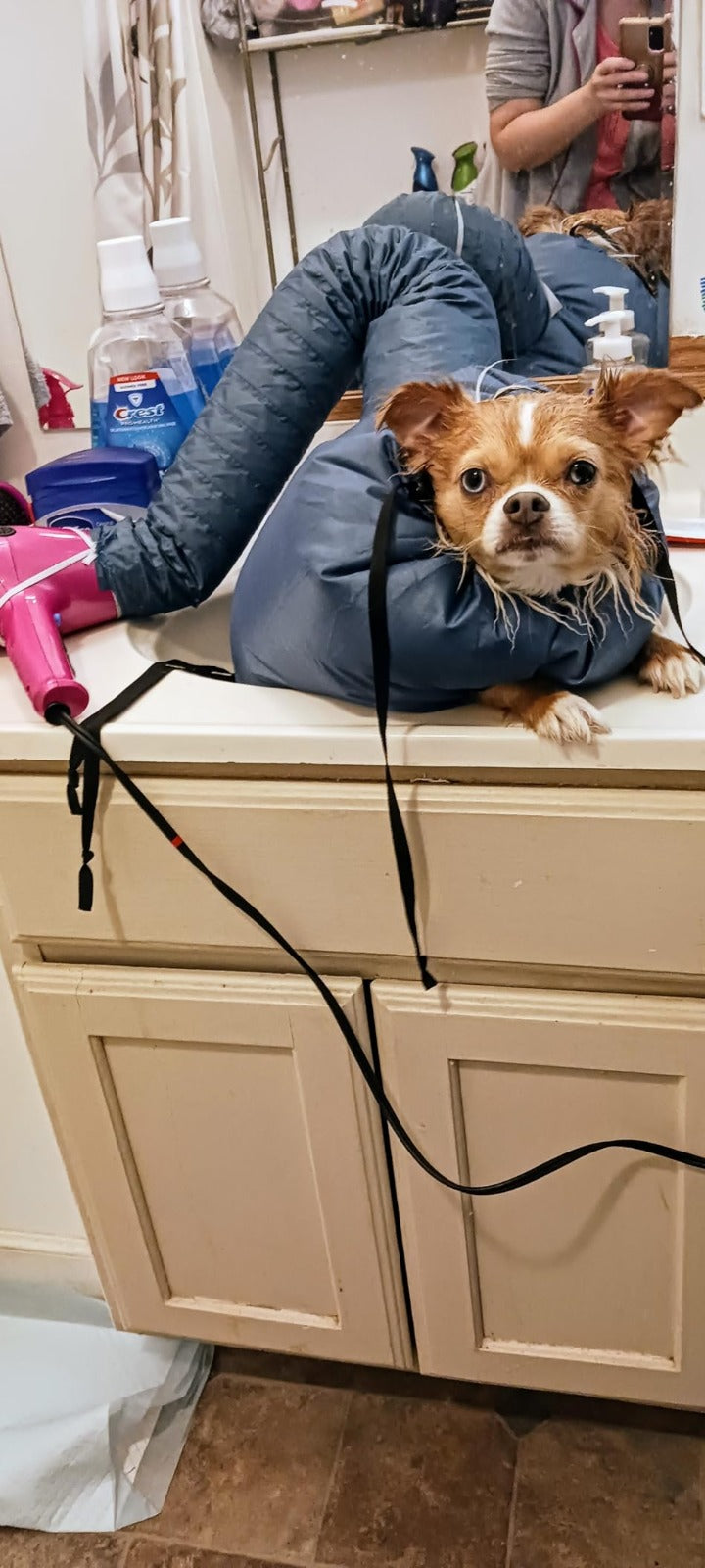 Mi casa era un caos cada baño. Pelo por el sofá, piso, ropa. Ahora, después del baño, meto a Isis adentro, conecto la secadora y listo. El pelo queda dentro de la bolsa y el piso limpio. Mucha menos limpieza después. Vale cada centavo.