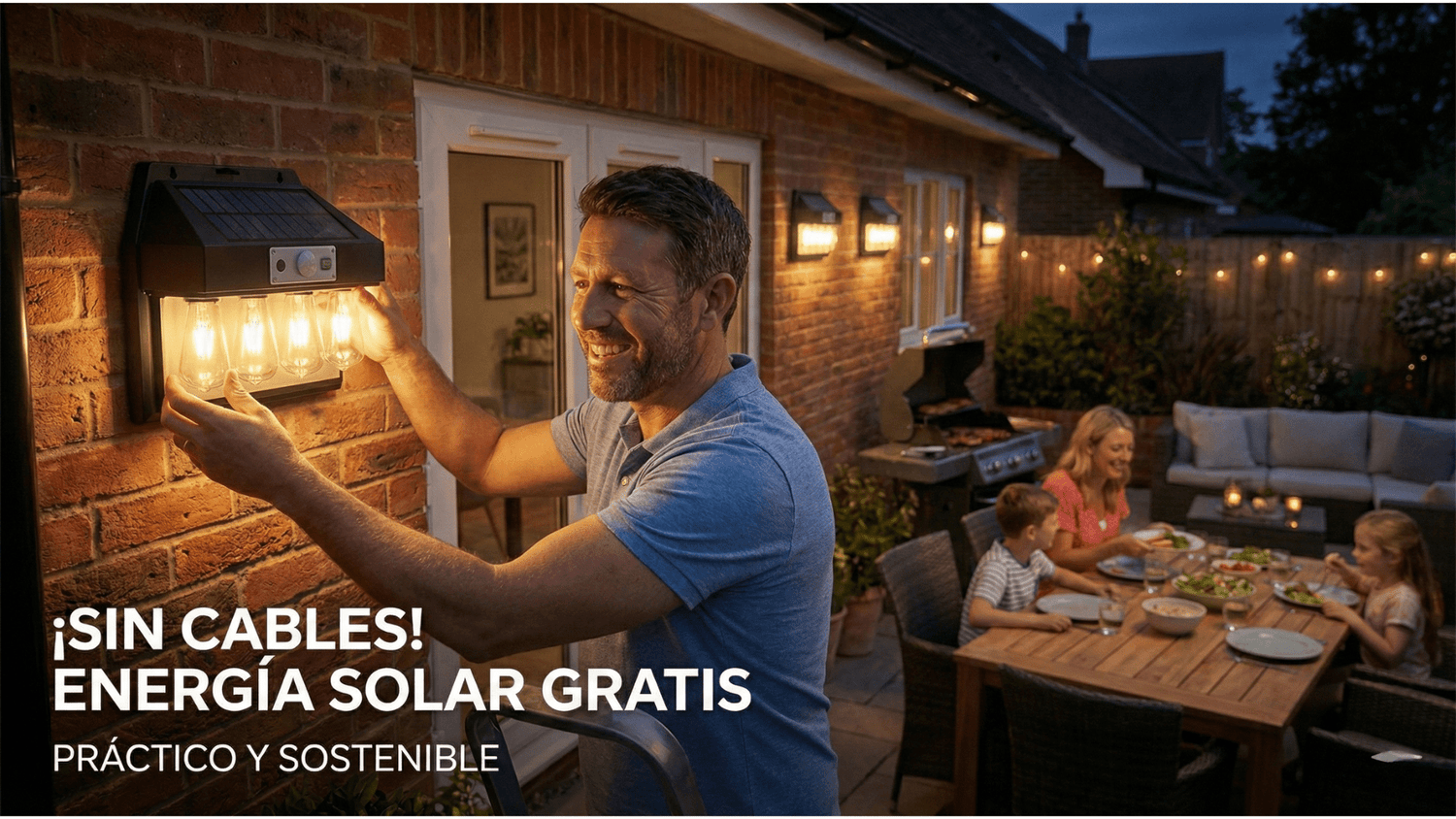 La Lámpara Solar de Pared de 4 Focos es la solución perfecta para iluminar tu casa sin gastar luz y sin complicarte con cables.