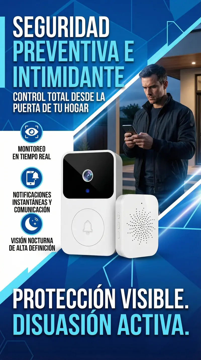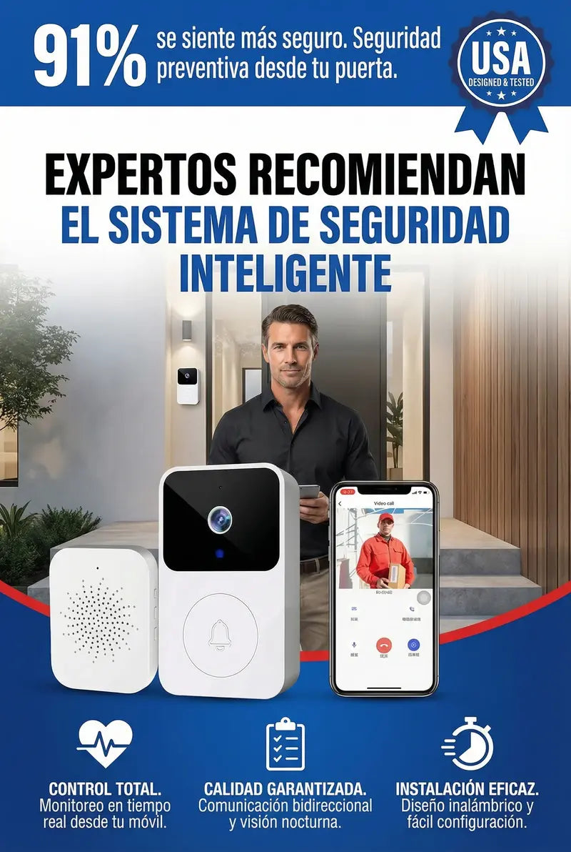 Incluye el timbre inalámbrico con cámara integrada, sistema de audio bidireccional (micrófono y altavoz), accesorios de instalación y manual de uso. Todo lo necesario para activar la seguridad de tu puerta desde el primer momento.
