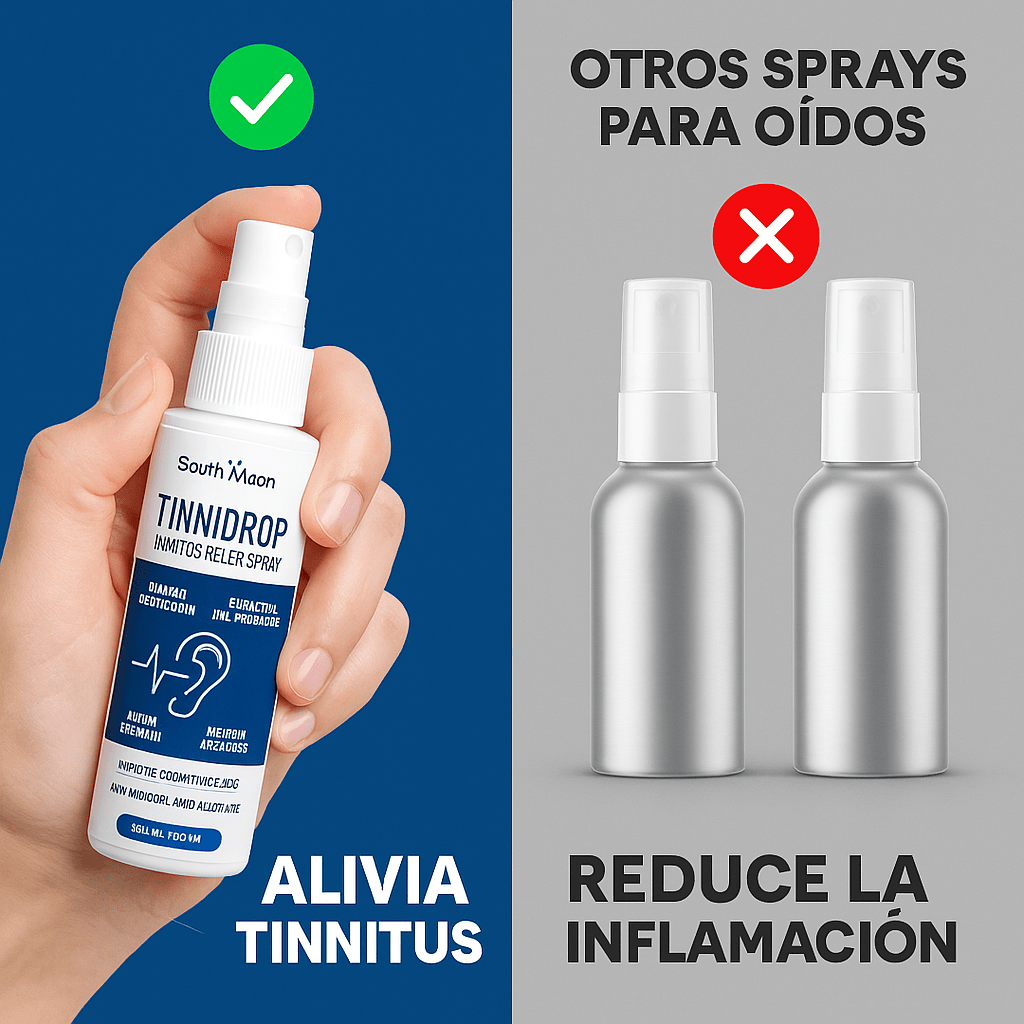Tinnidrop™ es un spray natural diseñado para limpiar y proteger tus oídos, eliminando la inflamación y ayudando a mejorar tu bienestar auditivo, aliviando molestias como: