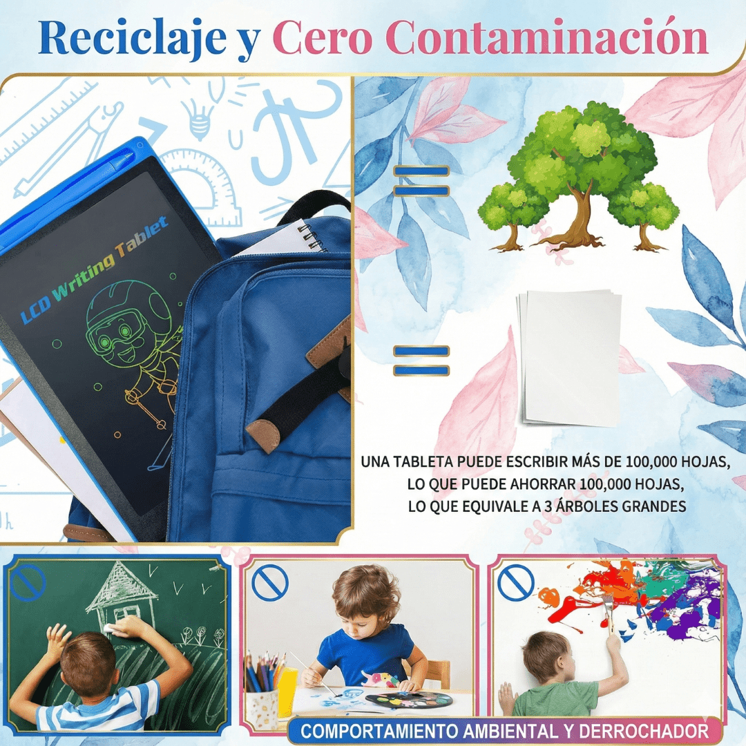 Los niños pueden dibujar, escribir, practicar letras, repasar trazos, jugar y borrar con un solo clic… ¡sin gastar papel!