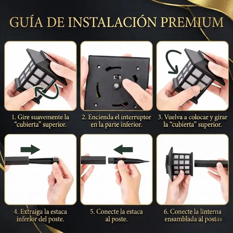 Al anochecer, las luces se encienden automáticamente y se apagan al amanecer, sin necesidad de interruptores, cables ni consumo eléctrico.