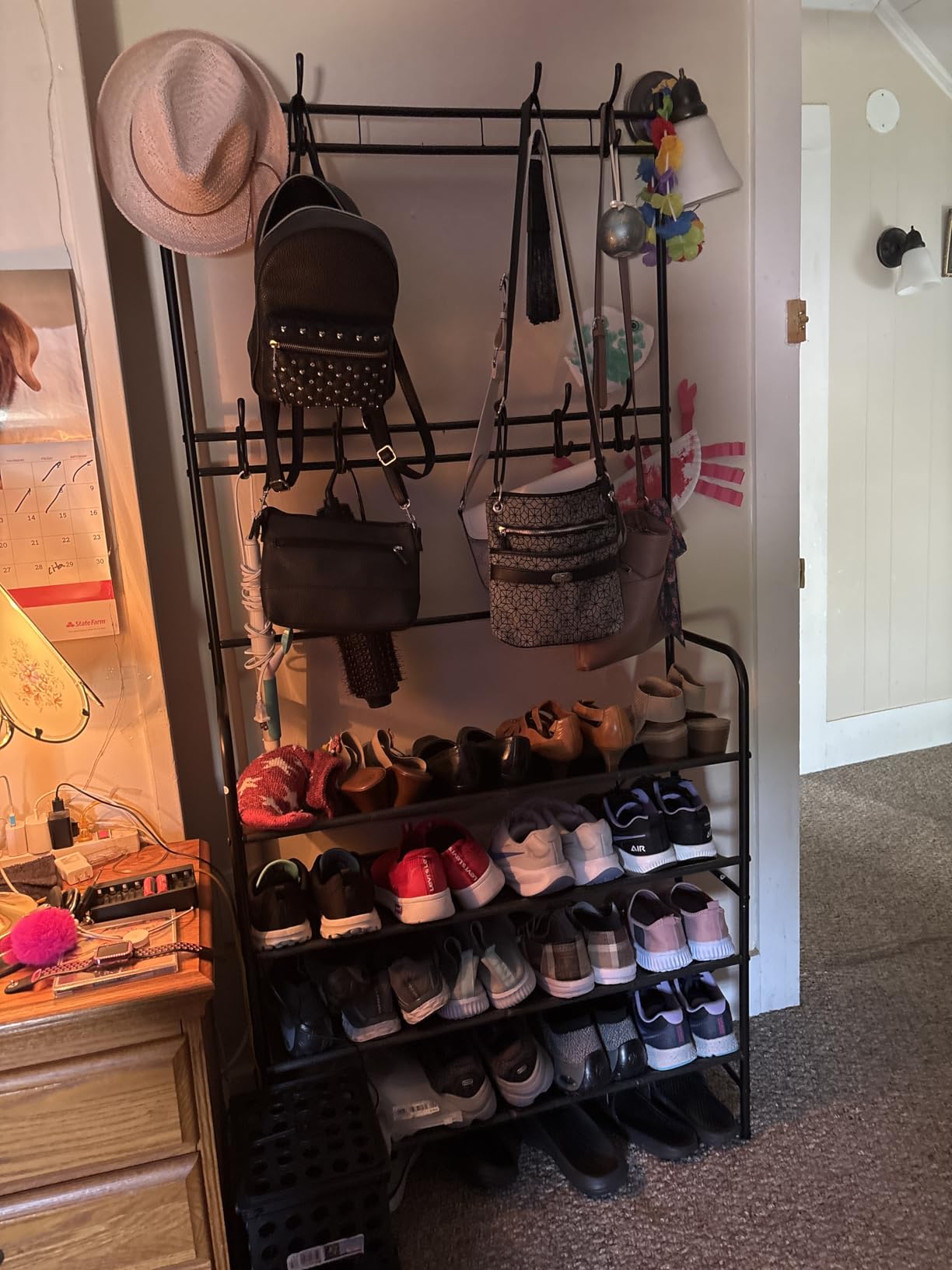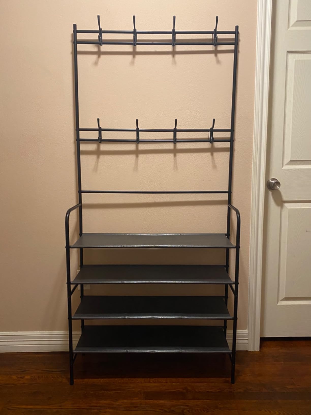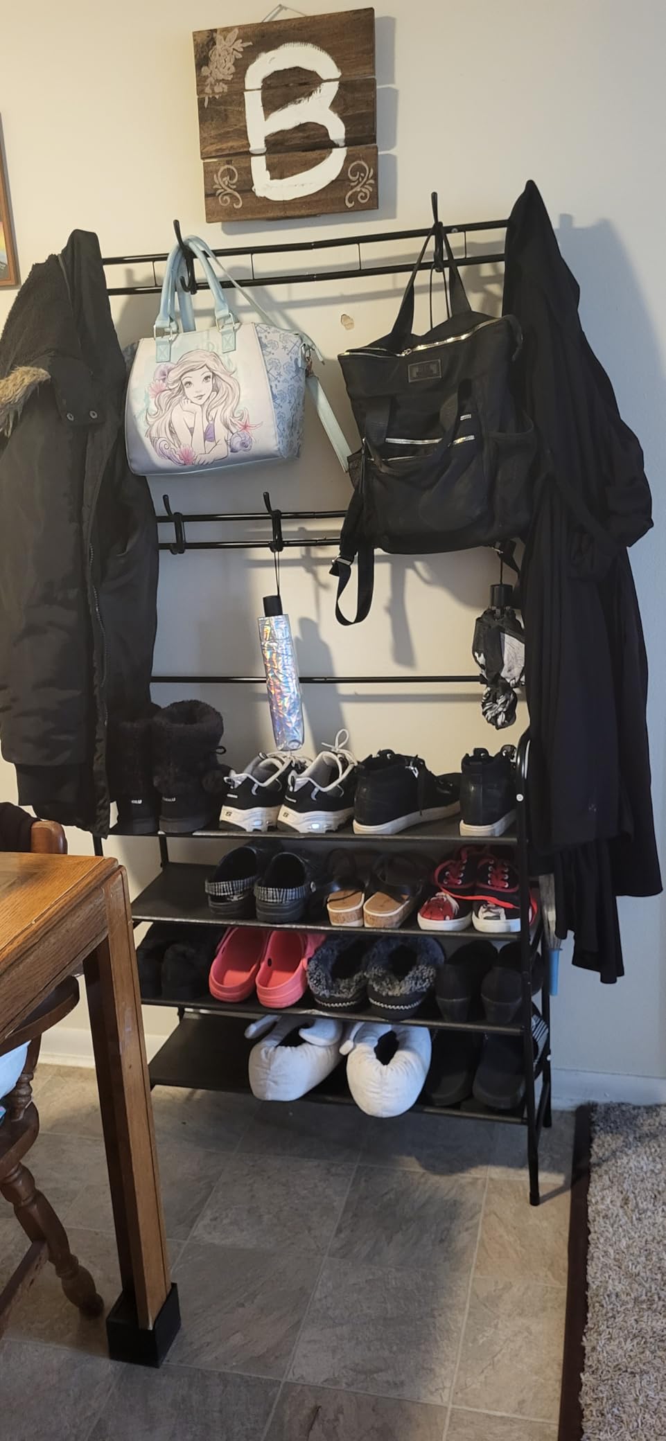 Soporta peso distribuido en los niveles inferiores para zapatos y cajas, y ropa pesada en los ganchos superiores (abrigos, mochilas, bolsos) sin perder estabilidad.